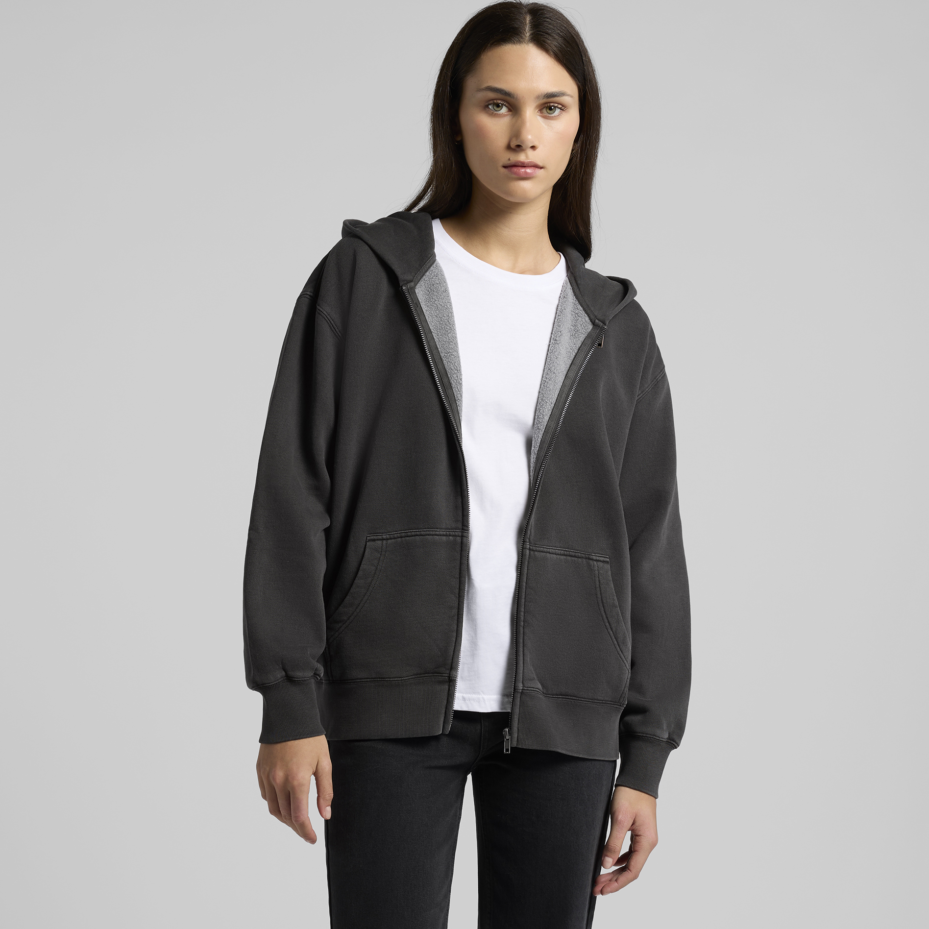 Construction: Garment dyed, zip hood, drop shoulder, kangaroo pocket, self-fabric lined hood, no drawcord, SBS two-way zip, sleeve cuff ribbing, CVC fleece, preshrunk to minimise shrinka
